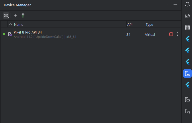 [Flutter] IntelliJ Device Manager 버튼 안 보일 때 활성화 방법
