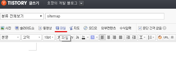그래서 편법적으로 게시물 첨부파일로 사이트맵 XML을 등록한 후