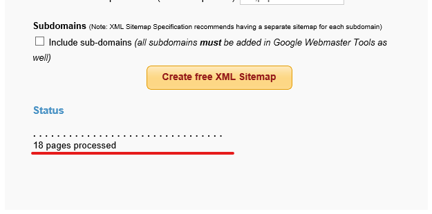 'Create free XML Sitemap' 버튼 클릭하시면 사이트맵 XML파일 생성이 시작됩니다.