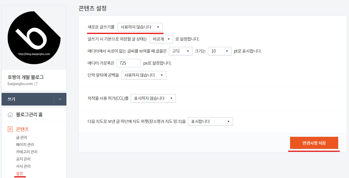 우선 에디터 설정을 구 에디터로 변경하겠습니다.