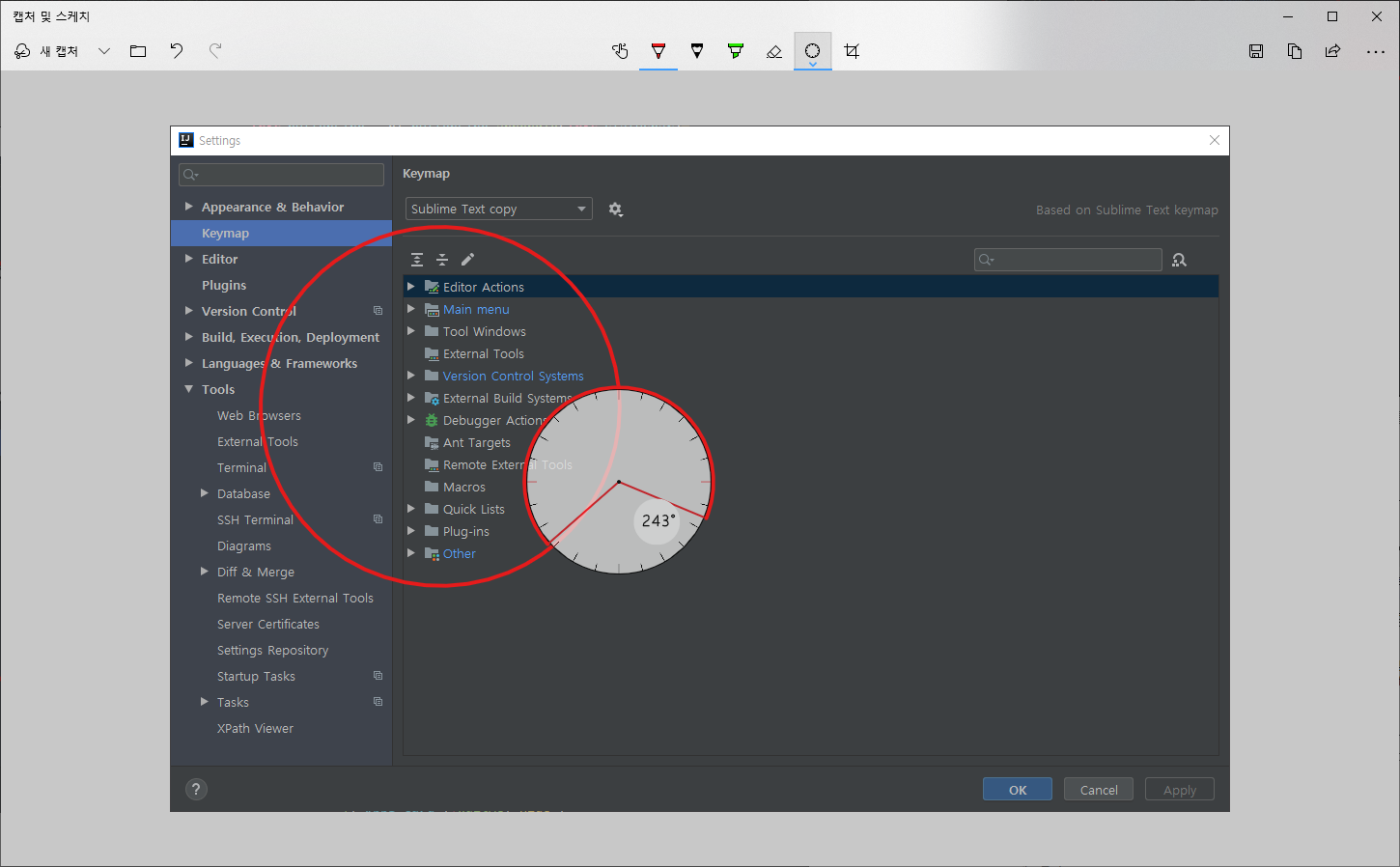 Windows 10 1903업데이트에서 변경된 캡처도구에 줄자와 각도기 기능이 추가되었다.